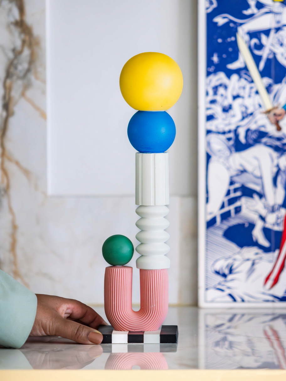 TOMMY est une sculpture contemporaine en Jesmonite qui allie esthétique moderne et identité artistique forte. Conçu comme un totem décoratif, TOMMY s’inspire des formes géométriques emblématiques et des teintes vibrantes du mouvement Memphis, pour offrir une pièce audacieuse, originale et profondément expressive.